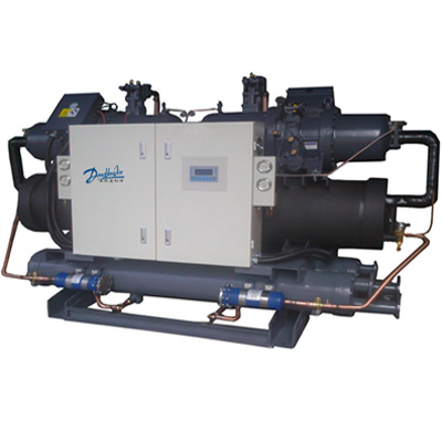 再流入蒸發器進行蒸發,而蒸發時要吸收熱量,從而就對蒸發器里的硫酸(槽液)進行了降溫,降溫后的硫酸通過水泵輸送到電鍍(氧化)槽,就這樣一個循環過程。水冷式間接冷凍在電鍍(氧化)行業的制冷原理:冷卻塔底盆里的水通過水泵輸送到冷水機的冷凝器,對冷凝器進行降溫。